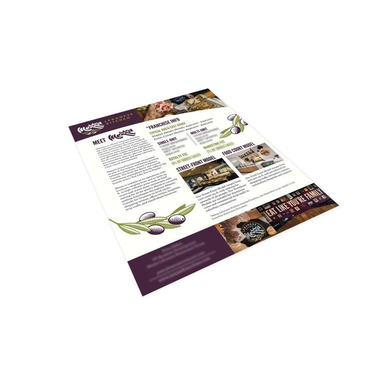 Working with Mezza Lebanese Kitchen was one of the most incredible experiences of my professional career. By developing on their existing brand, I helped take the restaurant chain to new heights through strategic marketing. I created their restaurant and franchise websites, directed their first national television commercial, designed menu boards, created trade show materials and much more.